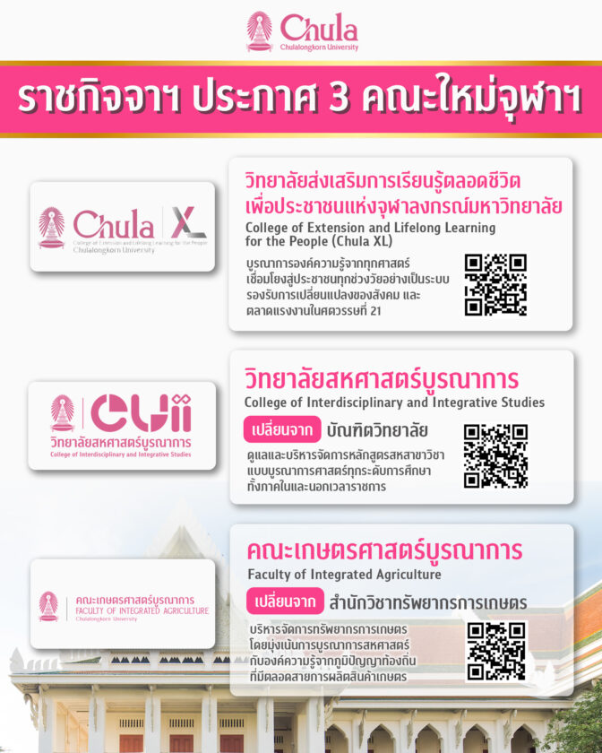 นอกจาก Chula XL จุฬาฯ ยังประกาศจัดตั้งและปรับโครงสร้างหน่วยงานรวม 3 แห่ง ได้แก่: