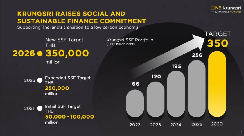 พร้อมตั้งเป้าใหญ่ พอร์ตการเงินเพื่อความยั่งยืน 350,000 ล้านบาท ภายในปี 2030 หลังทำเป้าเดิมทะลุกำหนด และเร่งใช้ Data & AI ยกระดับบริการแบบเฉพาะบุคคล (Personalized Banking) ครอบคลุมลูกค้ากว่า 10 ล้านราย