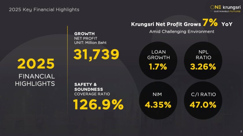 ธนาคารกรุงศรีอยุธยา ประกาศทิศทางธุรกิจปี 2569 ภายใต้ยุทธศาสตร์ “วันกรุงศรี (One Krungsri for a Sustainable Future)” เดินหน้าปรับบทบาทจาก “ธนาคาร” สู่ “พันธมิตรทางการเงิน” ที่ร่วมแก้โจทย์โครงสร้างเศรษฐกิจไทย ทั้งหนี้ครัวเรือน ความเปราะบางของ SME การเปลี่ยนผ่านสู่เศรษฐกิจคาร์บอนต่ำ และความปลอดภัยทางการเงินในยุคดิจิทัล