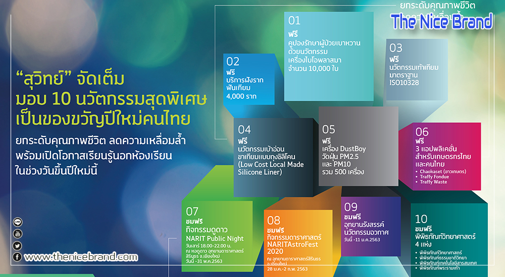 “สุวิทย์” แจกของขวัญปีใหม่ให้คนไทย มอบนวัตกรรมยกระดับคุณภาพชีวิต แจก 10,000 คูปองรักษาแผลเรื้อรังในผู้ป่วยเบาหวานยากไร้ฟรีผ่าน 14 โรงพยาบาลทั่วประเทศ และให้บริการฝังรากฟันเทียมและนวัตกรรมขาเทียมสำหรับผู้พิการราคาพิเศษ