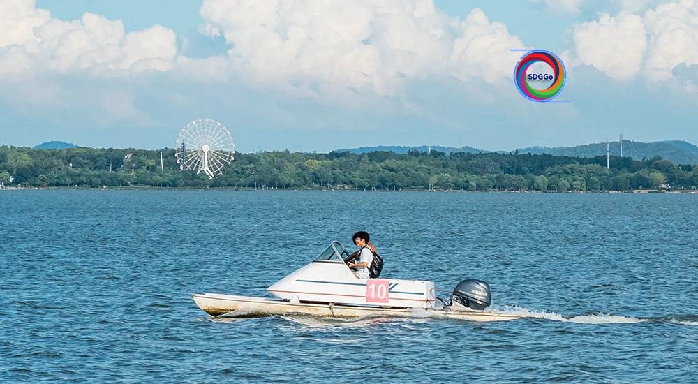 ภาพบรรยากาศภายนอกห้องประชุมสะท้อนความผูกพันของเมืองกับสายน้ำได้อย่างชัดเจน—ตั้งแต่ชายหาดทะเลสาบตะวันออกที่เปล่งประกายราวเงินยามน้ำหลาก การแข่งขันวอลเลย์บอลริมชายหาด ไปจนถึงป่าใต้น้ำที่ทะเลสาบจางตู กลายเป็นฉากธรรมชาติที่ผสานวิถีชีวิตคนเมืองอย่างกลมกลืน