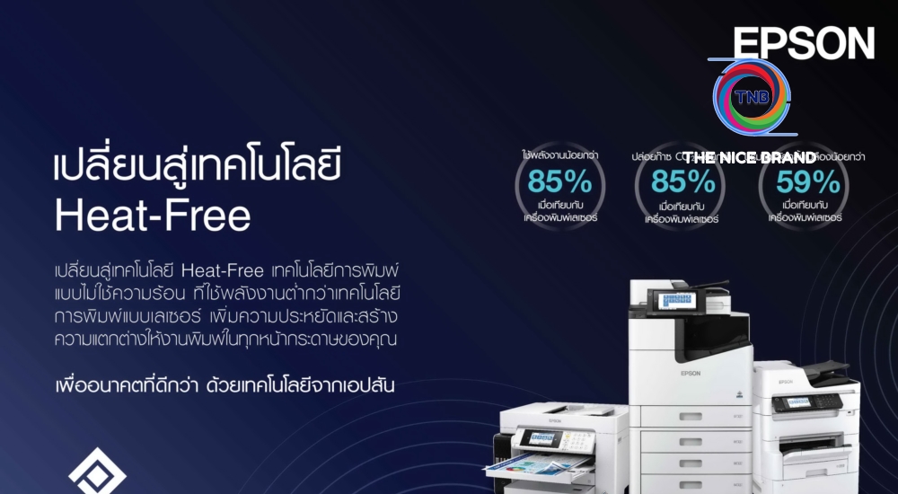 ในสำนักงานปัจจุบัน มีเพียงเครื่องปรับอากาศและไฟส่องสว่างเท่านั้น ที่ใช้พลังงานไฟฟ้ามากกว่าอุปกรณ์สำนักงาน ในความเป็นจริงแล้ว เครื่องพิมพ์คิดเป็นสัดส่วนถึง 10% ของการใช้พลังงานทั้งหมด การเปลี่ยนจากเครื่องพิมพ์เลเซอร์มาใช้เครื่องพิมพ์อิงค์เจ็ทที่มีเทคโนโลยี Heat-Free ของเอปสันจะสามารถลดการใช้พลังงานในการพิมพ์ได้มากถึง 85% การใช้พลังงานที่น้อยลงนี้ยังช่วยลดผลกระทบต่อสิ่งแวดล้อม เนื่องจากช่วยลดการปล่อยก๊าซคาร์บอนไดออกไซด์ได้อีก