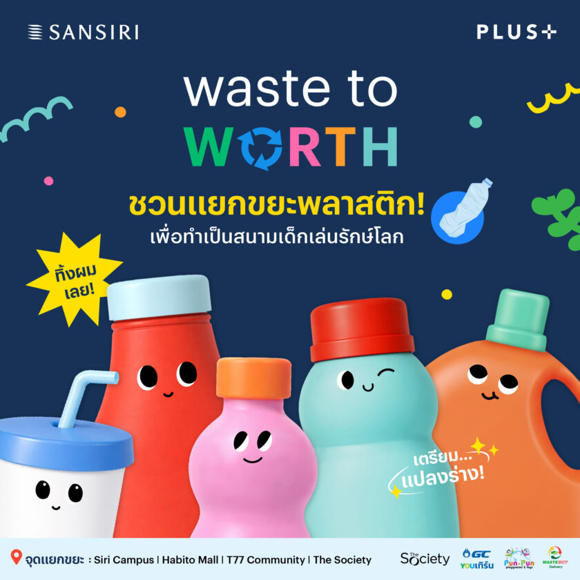 แสนสิริ ประกาศยกระดับแนวคิดความยั่งยืนสู่การลงมือทำจริง ผนึก 4 พันธมิตรสายกรีน GC YOUเทิร์น, WasteBuy Delivery, ปันปันเพลย์กราวด์ และ พลัส พร็อพเพอร์ตี้ ร่วมพัฒนาโมเดลต้นแบบ “waste to WORTH” เปลี่ยนขยะพลาสติกจากลูกบ้าน ให้กลายเป็น สนามเด็กเล่นรีไซเคิล ที่ปลอดภัย ใช้งานได้จริงในโครงการที่อยู่อาศัย