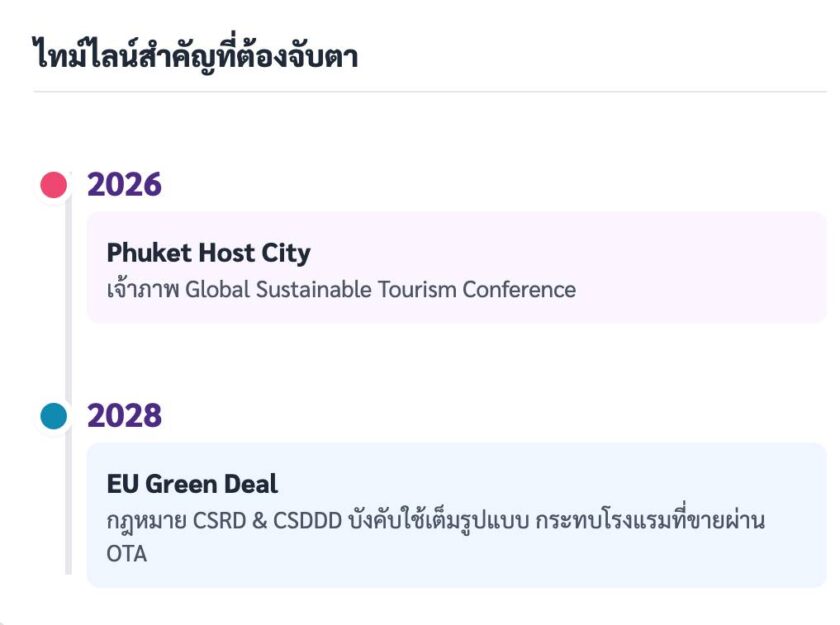 ขณะเดียวกัน บรรดาแพลตฟอร์ม OTA ต่างๆ เริ่มกำหนดมาตรฐาน Sustainability เข้มข้นขึ้น ทำให้โรงแรมไทยต้องเร่งปรับตัวเพื่อไม่ตกขบวนการแข่งขัน