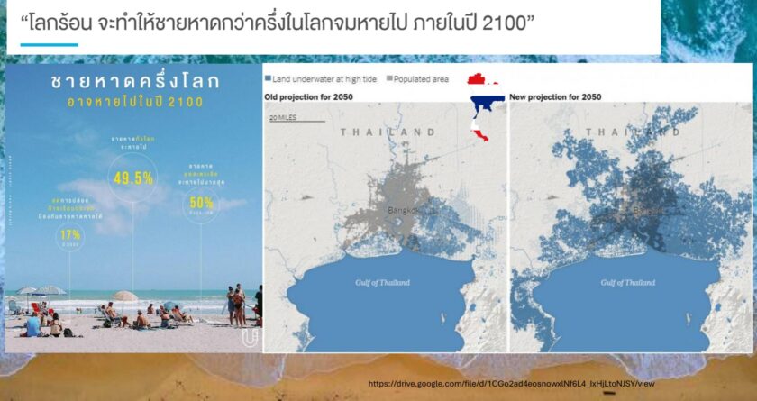 สำหรับประเทศไทย ผลกระทบเริ่มเห็นชัดจากเหตุการณ์ปะการังฟอกขาวรุนแรงที่สุดในรอบ 10 ปี รวมถึงปัญหาการกัดเซาะชายฝั่ง โดยเฉพาะจังหวัดจันทบุรีที่สูญเสียพื้นที่ชายฝั่งไปแล้วมากกว่า 22% ขณะเดียวกัน กรุงเทพมหานครยังถูกจัดให้อยู่ในกลุ่มเมืองหลวงที่มีความเสี่ยงสูงต่อผลกระทบจากการเปลี่ยนแปลงสภาพภูมิอากาศ ทั้งจากน้ำทะเลหนุน น้ำท่วม และอากาศสุดขั้ว
