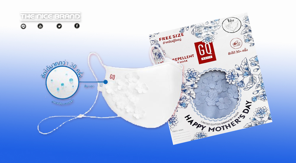 หน้ากากผ้ากันน้ำ รุ่นสุขสันต์วันแม่ GQWhite™ Mask Mother’s Day Edition เป็นอีกหนึ่งทางเลือกสำหรับของขวัญ เพื่อเติมเต็มเทศกาลวันแม่ปีนี้ ให้ทรงคุณค่ายิ่งขึ้น ซึ่งนอกจากจะเก็บทั้ง 7 ฟีเจอร์ เพื่อมอบการปกป้องไว้อย่างเดิมแล้ว ยังเสริมความพิเศษด้วยดีเทลดอกไม้ที่ปักอยู่ด้านนอกของหน้ากาก ดูสวยงาม น่าสะสม พร้อมบรรจุมาในแพ็กเกจแบบ gift-ready ด้วยซองที่ทำจากกระดาษการ์ดพร้อมช่องเขียนข้อความ ให้ลูกๆ นำไปเขียนข้อความสั้นๆ แล้วมอบเป็นของขวัญแก่คุณแม่ได้ทันที