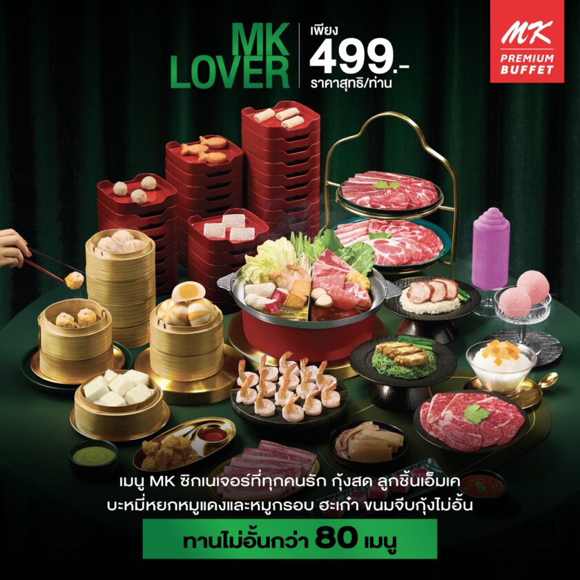 - MK Lover Buffet 499 บาท → เน้นความคุ้มค่า คนรักเมนูซิกเนเจอร์ ติ่มซำ บะหมี่หมูแดงและหมูกรอบ กุ้งสด เนื้อนำเข้า และเมนูซิกเนเจอร์