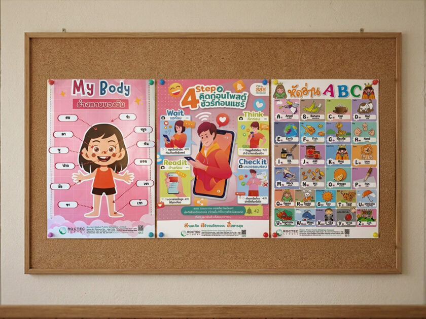 แนวทางดังกล่าวสอดคล้องกับหลัก Circular Economy ที่มุ่งยืดอายุการใช้งานของวัสดุ และส่งเสริมการนำกลับมาใช้ใหม่ (Upcycling) โดย ROCTEC ได้นำไวนิลจากสื่อโฆษณามาต่อยอดเป็นสื่อการเรียนการสอน สื่อรณรงค์ด้านสิ่งแวดล้อม สื่อเตือนภัยทางไซเบอร์ และกระเป๋านักเรียน