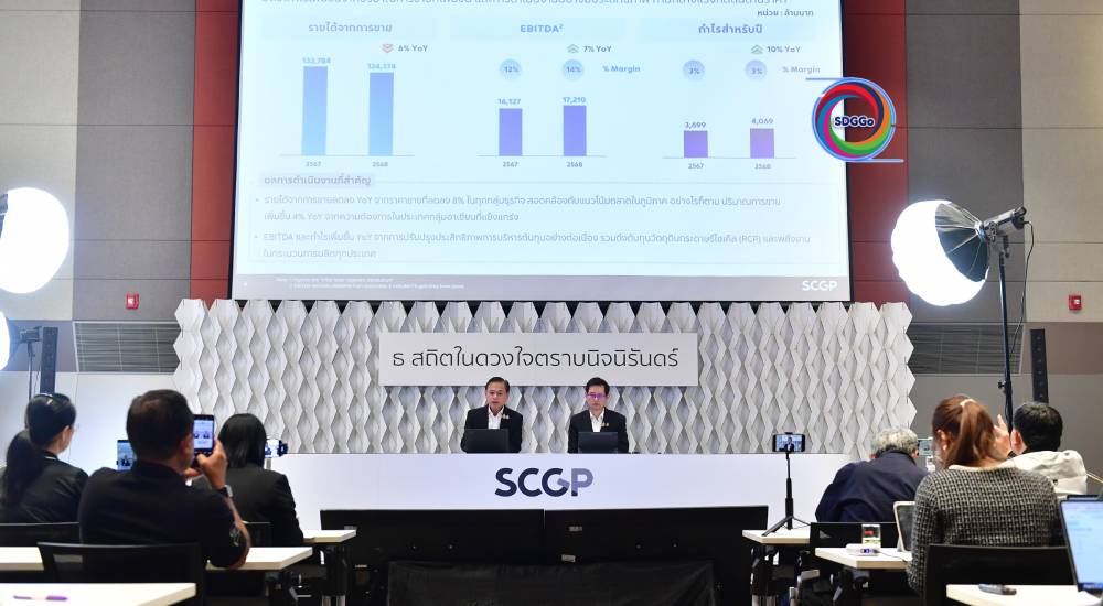 SCGP ประกาศผลงานปี 2568 รายได้ 1.24 แสนล้าน กำไรโต 10% จ่ายปันผล 0.60 บาทต่อหุ้น เตรียมลงทุน 10,000 ล้านบาท ขยายบรรจุภัณฑ์เชื่อมโยงผู้บริโภค พร้อมใช้ Robot–Cobot–Automation ยกระดับโรงงานอัจฉริยะ