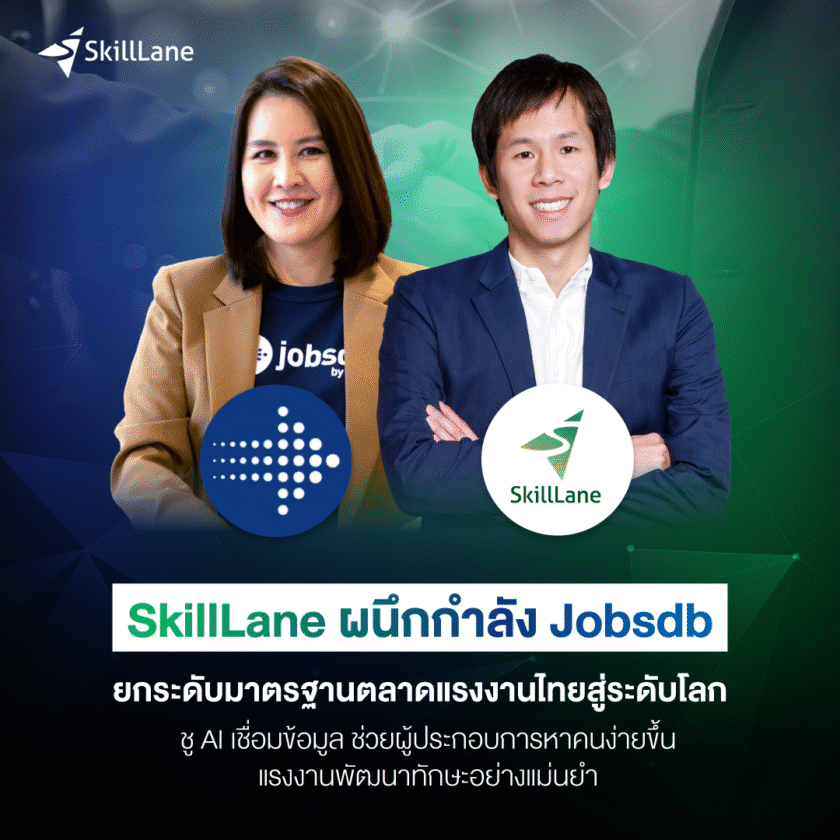 SkillLane X Jobsdb by SEEK สร้างแรงกระเพื่อมใหม่ให้กับตลาดแรงงานไทย ยกระดับศักยภาพแรงงาน ใช้ AI วิเคราะห์ข้อมูลเชิงลึก เพื่อสร้างมาตรฐานทักษะใหม่ สำหรับทุกสายอาชีพ ตอบโจทย์นายจ้างยุคดิจิทัล เปิดทางให้แรงงานพัฒนา Upskill และ Reskill ได้ตรงจุด
