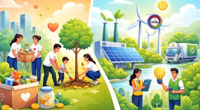 กลับมาดูที่มา ที่เป็นแรงผลักดันที่ทำให้เกิดการทำเรื่อง SROI นั่นคือปัญหาจากการเปลี่ยนแปลงสภาพภูมิอากาศทั่วโลก ที่คนไทยเราได้ยินบ่อยๆ คือ ปัญหาโลกร้อน จนทำให้นานาประเทศทั่วโลก ต้องออกมาสร้าง commitment ที่จะช่วยกันลดปัญหาด้านสิ่งแวดล้อม ลดการปล่อยก๊าซเรือนกระจก และส่วนหนึ่งของเป้าหมายของสหประชาชาติ ที่จะทำให้โลกไปถึง Net Zero Emission ได้ ก็คือ เป้าหมายการพัฒนาที่ยั่งยืน (Sustainable Development Goals: SDGs) 17 ข้อ ซึ่งเป็นชุดเป้าหมายการพัฒนาระดับโลกหลังปี ค.ศ.2015 ที่ได้รับการรับรองจาก 193 ประเทศสมาชิกขององค์การสหประชาชาติ ที่เชื่อมโยง ออกแบบมาเพื่อทำหน้าที่เป็น “พิมพ์เขียวเพื่อสันติภาพและความเจริญรุ่งเรือง เพื่อประชาชนและโลก ณ บัดนี้และต่อไปในอนาคต”