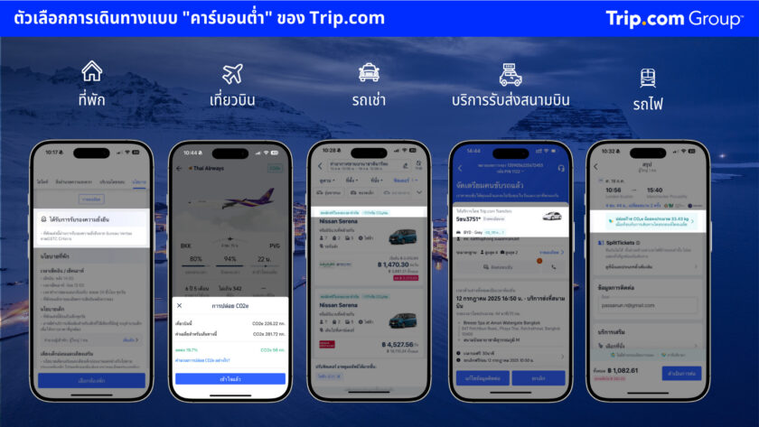นอกจากนี้ Trip.com Group ยังเปิดตัว ระบบแสดงข้อมูลการปล่อยก๊าซ CO₂ ครอบคลุมทุกบริการเดินทาง ไม่ว่าจะเป็น เที่ยวบิน รถเช่า (รวมถึงข้อมูลจาก ACRISS เปรียบเทียบรถไฟฟ้า, ไฮบริด และรถทั่วไป) บริการรับส่งสนามบิน รถไฟในยุโรป ทำให้ผู้ใช้งานสามารถเลือกการเดินทางที่ปล่อยคาร์บอนน้อยที่สุดได้ เพิ่มทางเลือกที่ เป็นมิตรต่อสิ่งแวดล้อมในทุกขั้นตอนของการเดินทาง