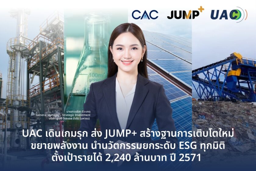 UAC ประกาศแผนกลยุทธ์ระยะยาว “JUMP+ Plan” เดินเกมรุกสร้างการเติบโตครั้งใหม่ ผสานพลัง “พลังงานสะอาด–นวัตกรรม–ESG” อย่างเป็นระบบ ตั้งเป้ายกระดับศักยภาพองค์กร พร้อมผลักดันรายได้แตะ 2,240 ล้านบาท ภายในปี 2571