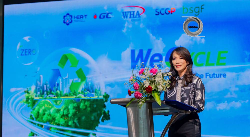 จรีพร จารุกรสกุล ประธานคณะกรรมการบริหาร และประธานเจ้าหน้าที่บริหารกลุ่ม WHA Group กล่าวว่า WeCYCLE คือกลไกสำคัญของยุทธศาสตร์ ESG ที่ WHA Group ใช้ขับเคลื่อนองค์กรสู่ Net Zero “เรามองขยะเป็น ‘ทรัพยากรใหม่’” แต่ละปีของ WeCYCLE Day คือหลักฐานชัดเจนว่าความร่วมมือข้ามภาคส่วน สามารถเปลี่ยนระบบอุตสาหกรรมให้เป็นมิตรต่อสิ่งแวดล้อมได้จริง ผ่านหลักการ Upcycling + Recycling และการสร้างโครงสร้างพื้นฐานด้านความยั่งยืนในนิคมอุตสาหกรรมของ WHA